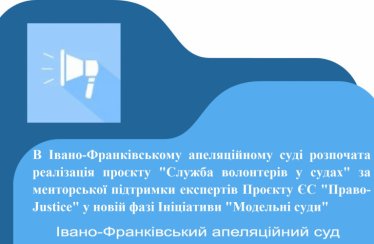 19 червня 2023 року в Івано-Франківському апеляційному суді підписано меморандум про реалізацію проєкту "Служба волонтерів у судах" за менторської підтримки експертів EU Project Pravo-Justice у новій фазі Ініціативи "Модельні суди".