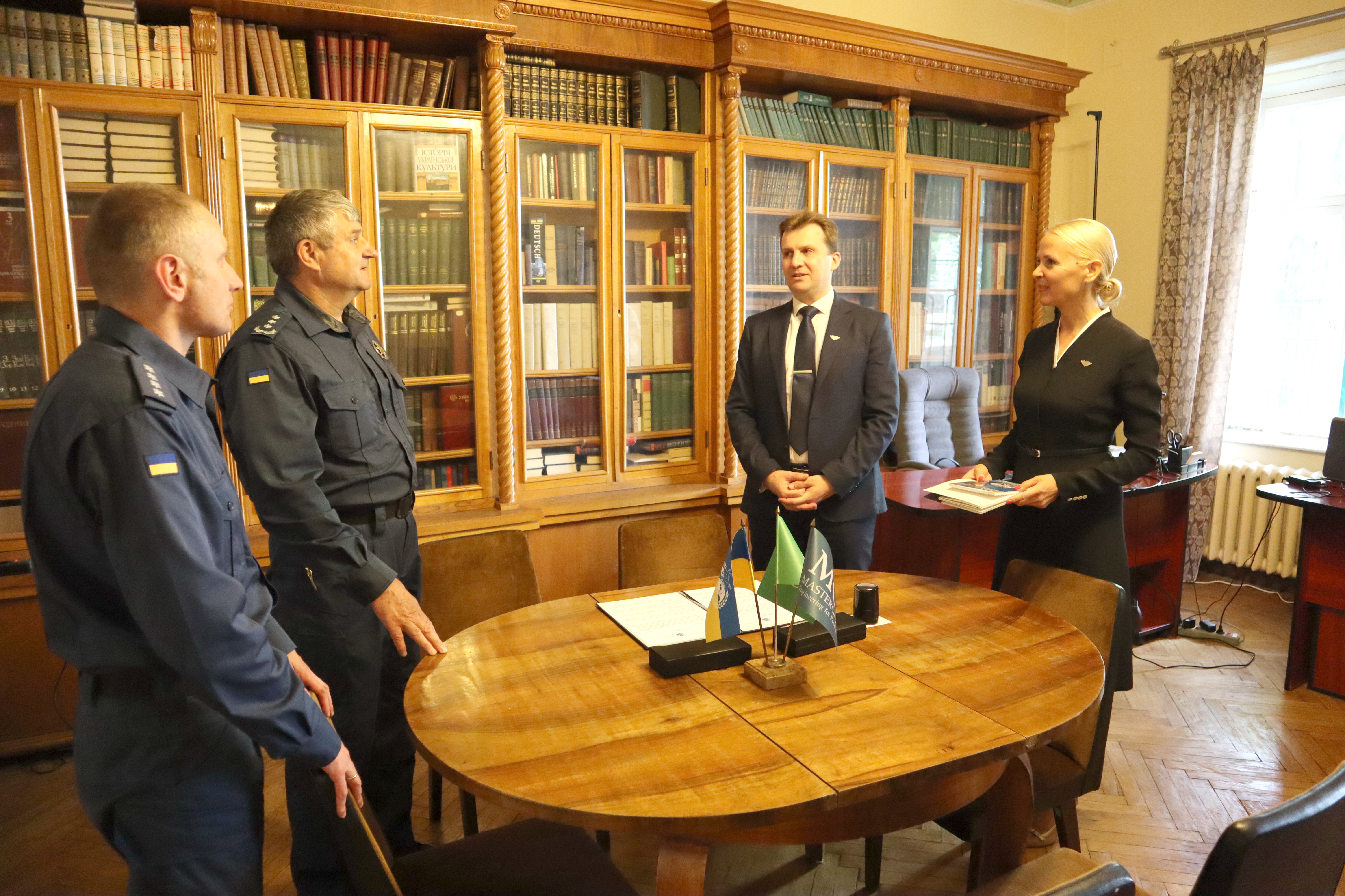 Генеральний директор ГО Юрій Черненко та полковник Служби судової охорони Ігор Коваленко закріпили своїми підписами домовленості про підтримку та надання безоплатної допомоги в експеремнальному проєкті організації діяльності охоронців Феміди столичного регіону.