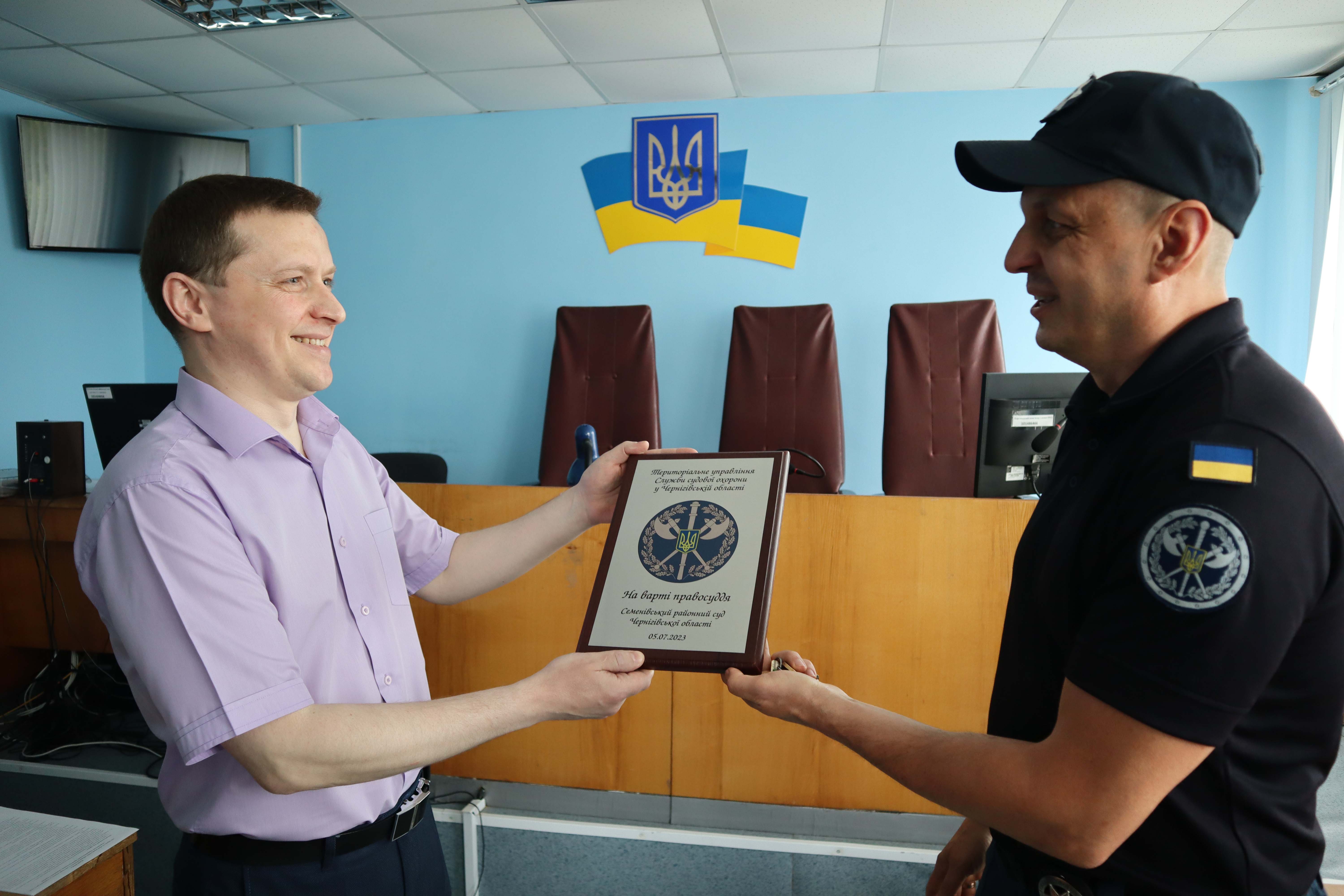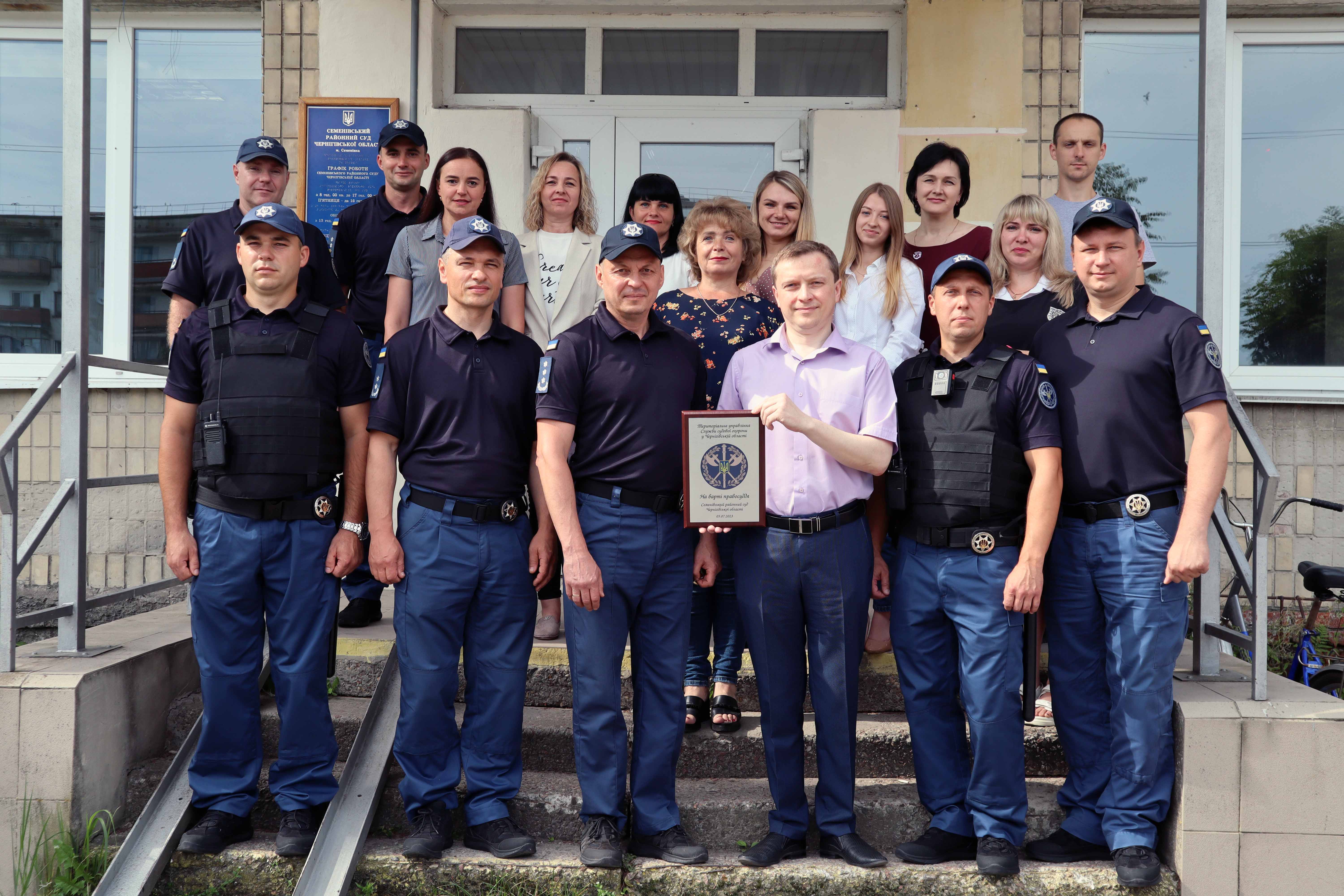 Сьогодні, 5 липня 2023 року, Семенівський районний суд Чернігівської області перейшов під захист співробітників територіального управління Служби судової охорони у Чернігівській області. Семенівський районний суд Чернігівської області став 26 в Чернігівській області і 659 в Україні органом системи правосуддя, що охороняється Службою судової охорони.