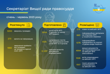 Протягом першого півріччя 2023 року співробітниками секретаріату Вищої ради правосуддя опрацьовано 3200 звернень громадян та 273 запити на інформацію.