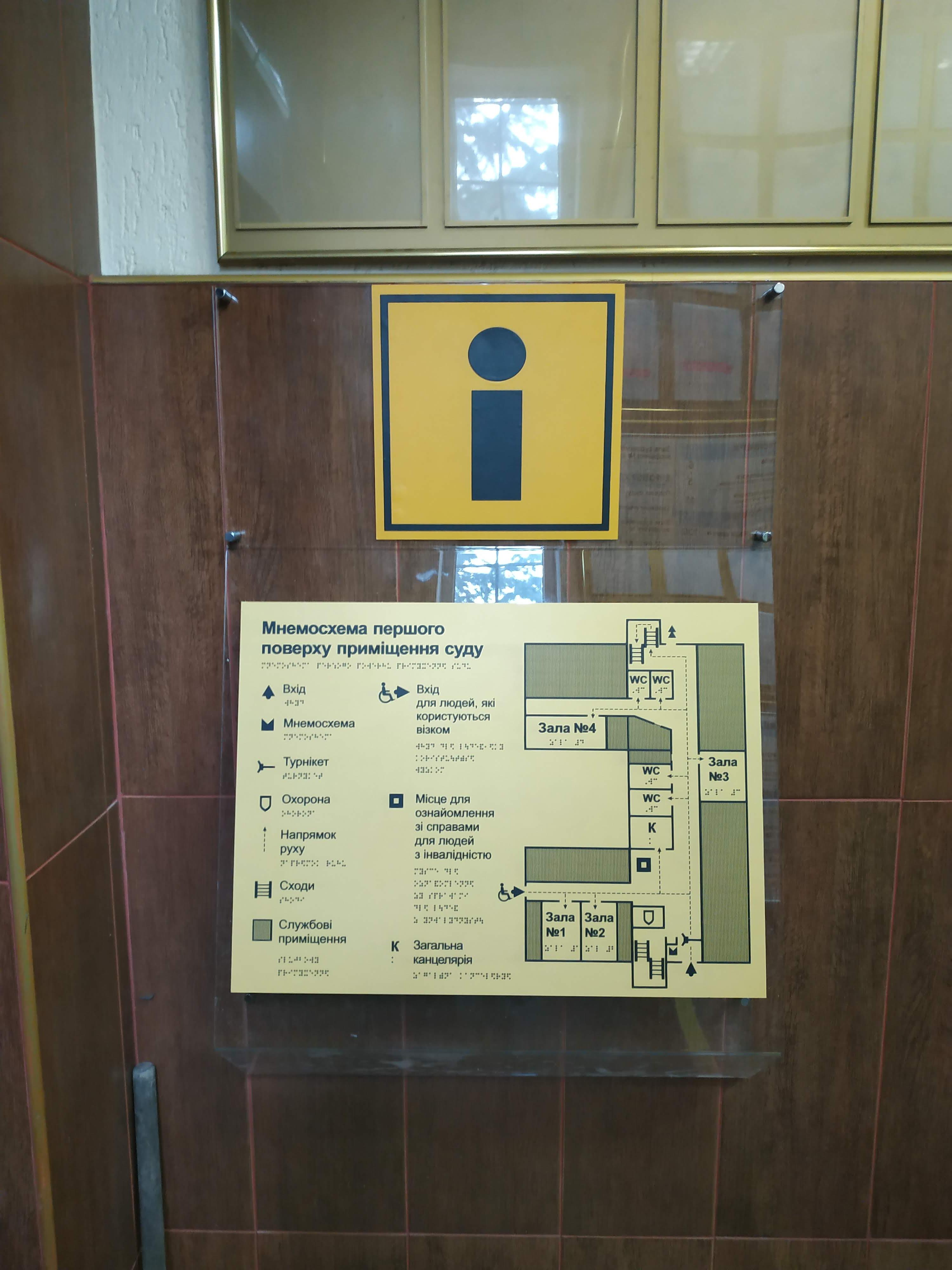 З метою розвитку та поширення ідей архітектурної, транспортної та інформаційної доступності органів правосуддя, інклюзивності публічного простору судових установ, застосування філософії універсального дизайну та забезпечення ефективної комунікації працівників судів з особами з інвалідністю Територіальним управлінням Державної судової адміністрації України в місті Києві реалізовано проєкт по створенню навігації та системи ознакування в Дарницькому районному суді міста Києва.