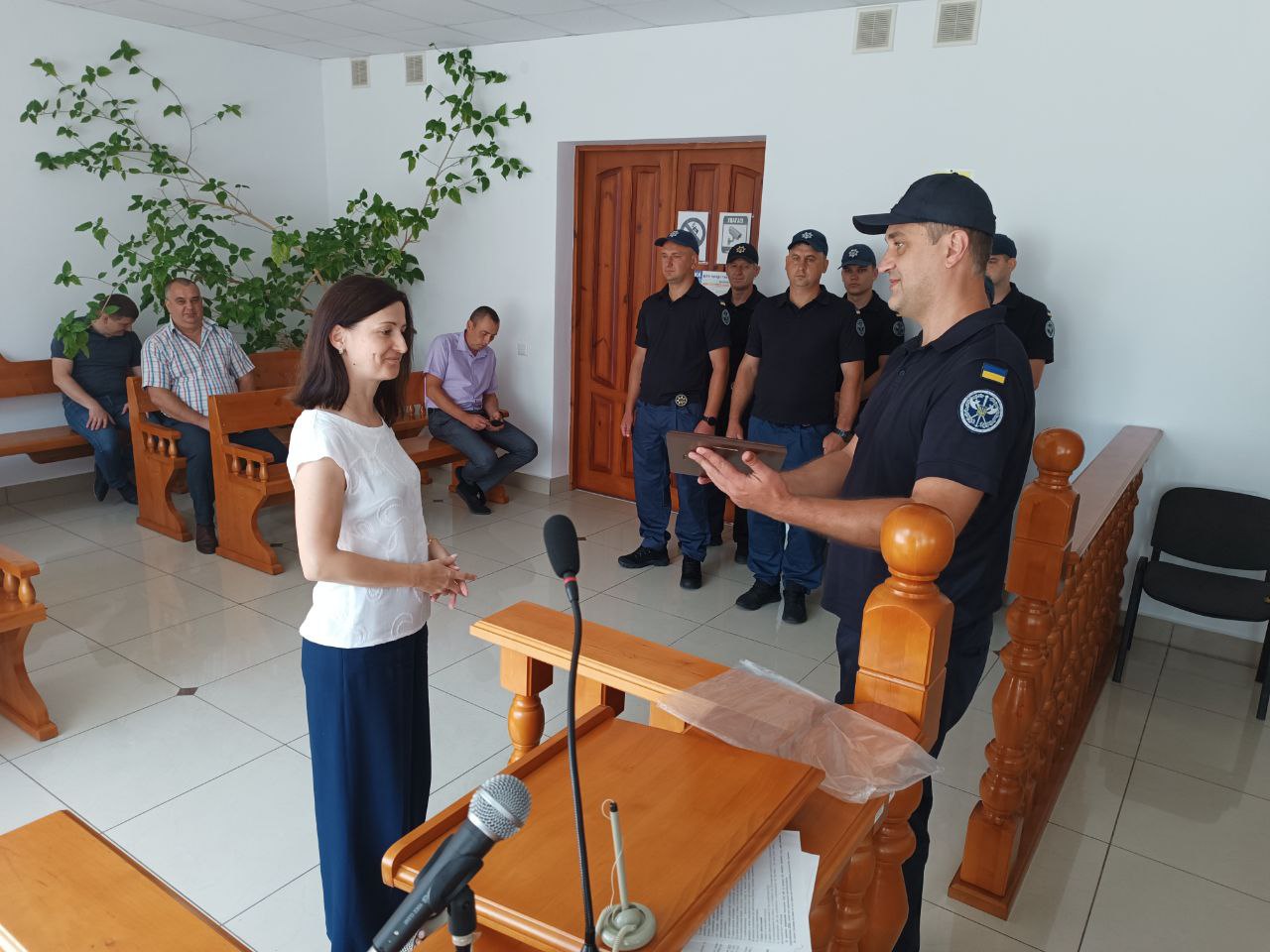 В.о. начальника Територіального управління Державної судової адміністрації України в Волинській області Світлана Демчук виступила з вітальним словом до співробітників Служби судової охорони та побажала їм успіхів та витримки на варті правосуддя.