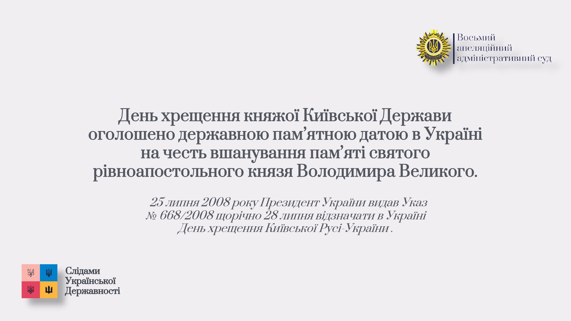 Цьогоріч 28 липня в Україні відзначається День Української Державності та вшановується пам’ять видатного державотворця, святого рівноапостольного князя Київського Володимира Великого.