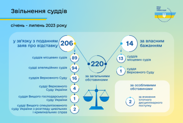 Протягом січня - липня 2023 року Вища рада правосуддя прийняла рішення щодо звільнення 222 суддів.