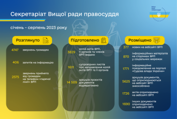Протягом січня-серпня 2023 року співробітниками секретаріату Вищої ради правосуддя опрацьовано 4747 звернень громадян та 406 запитів на інформацію.
