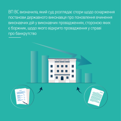 Спори щодо оскарження постанови державного виконавця про поновлення вчинення виконавчих дій у виконавчих провадженнях з примусового виконання наказів господарського суду, стороною в яких є боржник, щодо якого відкрито провадження у справі про банкрутство, підлягають розгляду господарським судом, у провадженні якого перебуває справа про банкрутство.