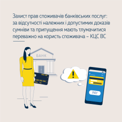 Верховний Суд виснував, що саме банк має доводити, що користувач своїми діями чи бездіяльністю сприяв втраті, незаконному використанню персонального ідентифікаційного номера або іншої інформації, яка дає змогу ініціювати платіжні операції; у разі недоведеності обставин, які безспірно свідчать про те, що користувач своїми діями чи бездіяльністю сприяв втраті, незаконному використанню ПІН-коду або іншої інформації, яка дає змогу ініціювати платіжні операції, необхідно виходити з відсутності вини користувача у перерахуванні чи отриманні спірних грошових коштів.