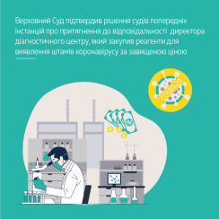 Касаційний господарський суд у складі Верховного Суду залишив у силі рішення судів попередніх інстанцій у справі про відшкодування збитків у розмірі понад 7,4 млн грн директором діагностичного центру, що закупив реагенти для виявлення штамів коронавірусу за завищеною ціною. Про це йдеться в постанові КГС ВС.