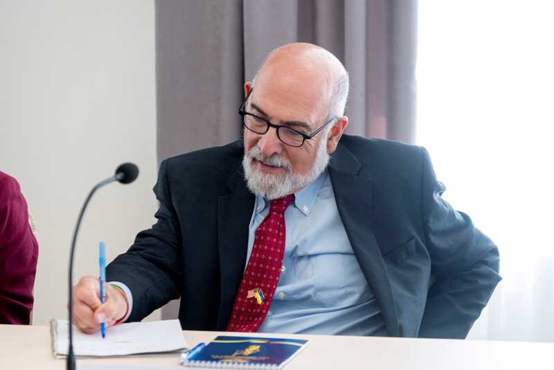 «Ми сподіваємося ознайомитися сьогодні з найкращими практиками організації судових процесів в умовах воєнного стану. Ми готові співпрацювати з вами, представниками України, у будь-який зручний спосіб», – звернувся до українських колег суддя Вищого суду Лос-Анджелесу Майкл Лінфілд, котрий є спеціалістом у галузі дотримання прав людини в умовах збройних конфліктів.