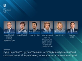 Суддя Верховного Суду у Касаційному цивільному суді, секретар Пленуму Верховного Суду Дмитро Луспеник, суддя ВС у Касаційному цивільному суді Наталія Сакара, суддя ВС у Касаційному адміністративному суді Олеся Радишевська, секретар судової палати з розгляду справ щодо податків, зборів та інших обов’язкових платежів КАС ВС Раїса Ханова, суддя ВС у Касаційному господарському суді Ганна Вронська та Секретар Великої Палати ВС Віталій Уркевич виступили з доповідями в онлайн-режимі на панельних дискусіях VII Харківського міжнародного юридичного форуму.