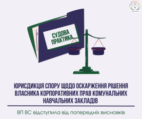 ВП ВС зазначила що, у спорах про оскарження рішення власника корпоративних прав (засновника) навчального закладу комунальної власності предметом спору є рішення сільської ради про реорганізацію навчального закладу шляхом пониження ступеня закладу загальної середньої освіти. Правовідносини в цій справі спрямовані на вирішення питань організації освітнього процесу, а саме забезпечення доступності освіти, права на здобуття дошкільної та повної загальної середньої освіти, можливості продовжити навчання на відповідному рівні освіти у зв`язку з реорганізацією закладу освіти, що має на меті передусім публічний, а не приватний інтерес. Реорганізований заклад є юридичною особою публічного права, як заклад освіти, що реалізує публічні інтереси держави під час здійснення освітнього процесу.