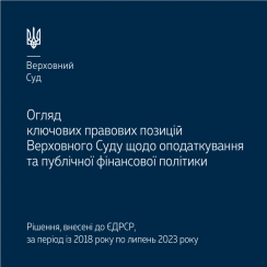 Пропонуємо ознайомитися з черговим тематичним оглядом (четвертий випуск), у якому викладено ключові правові позиції Верховного Суду щодо оподаткування та публічної фінансової політики – https://is.gd/0PYBNQ.