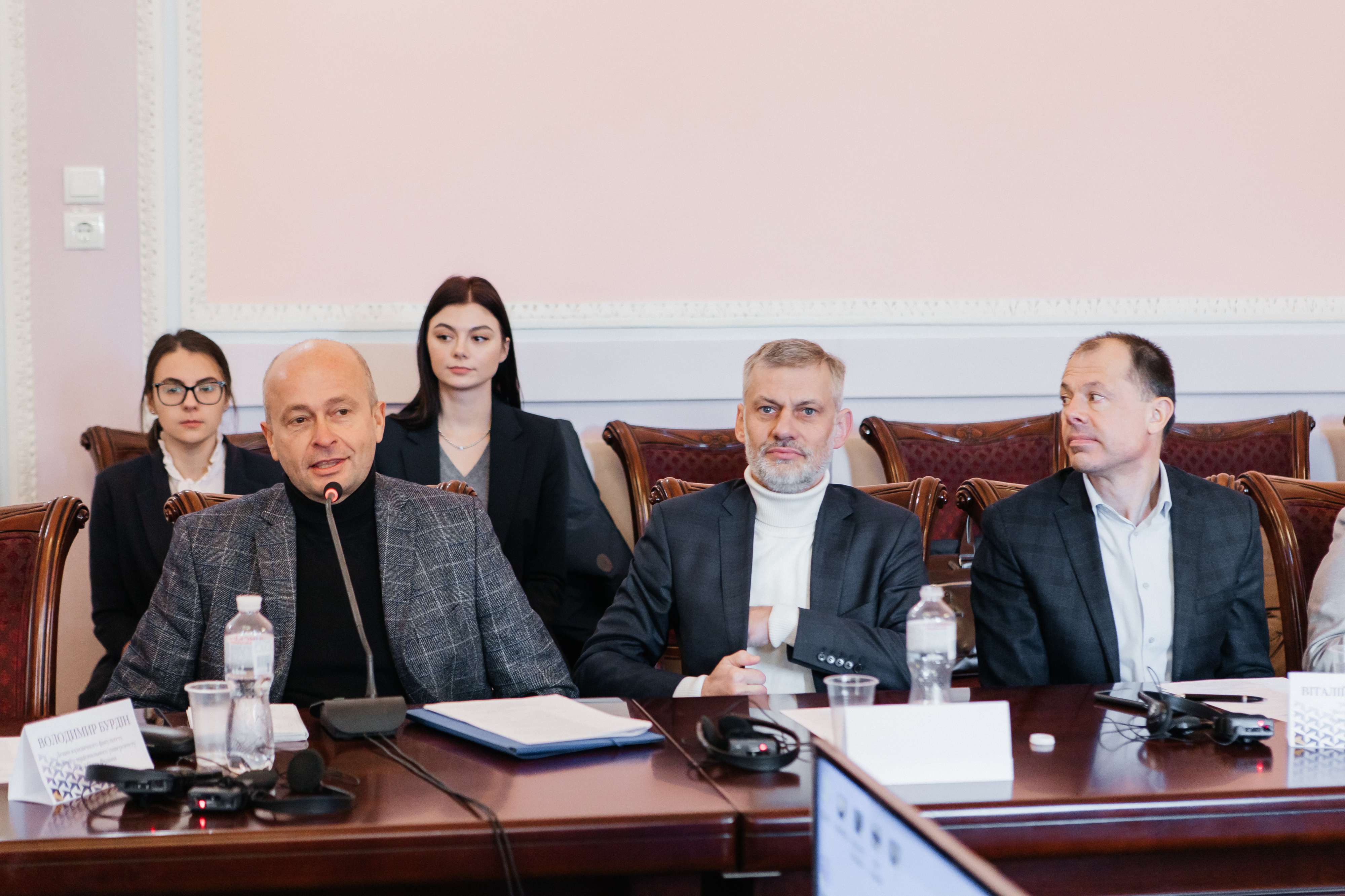 На завершення вітальних промов до присутніх звернувся декан юридичного факультету Львівського національного університету імені Івана Франка Володимир Бурдін: «Адміністративна юстиція в Україні перебуває на етапі свого розвитку, але незважаючи на це, адміністративні суди вже задекларували не лише свою потрібність, але й ефективність. Я радий сьогодні вітати багатьох експертів права, які зібралися задля обговорення важливих питань в умовах воєнного часу».