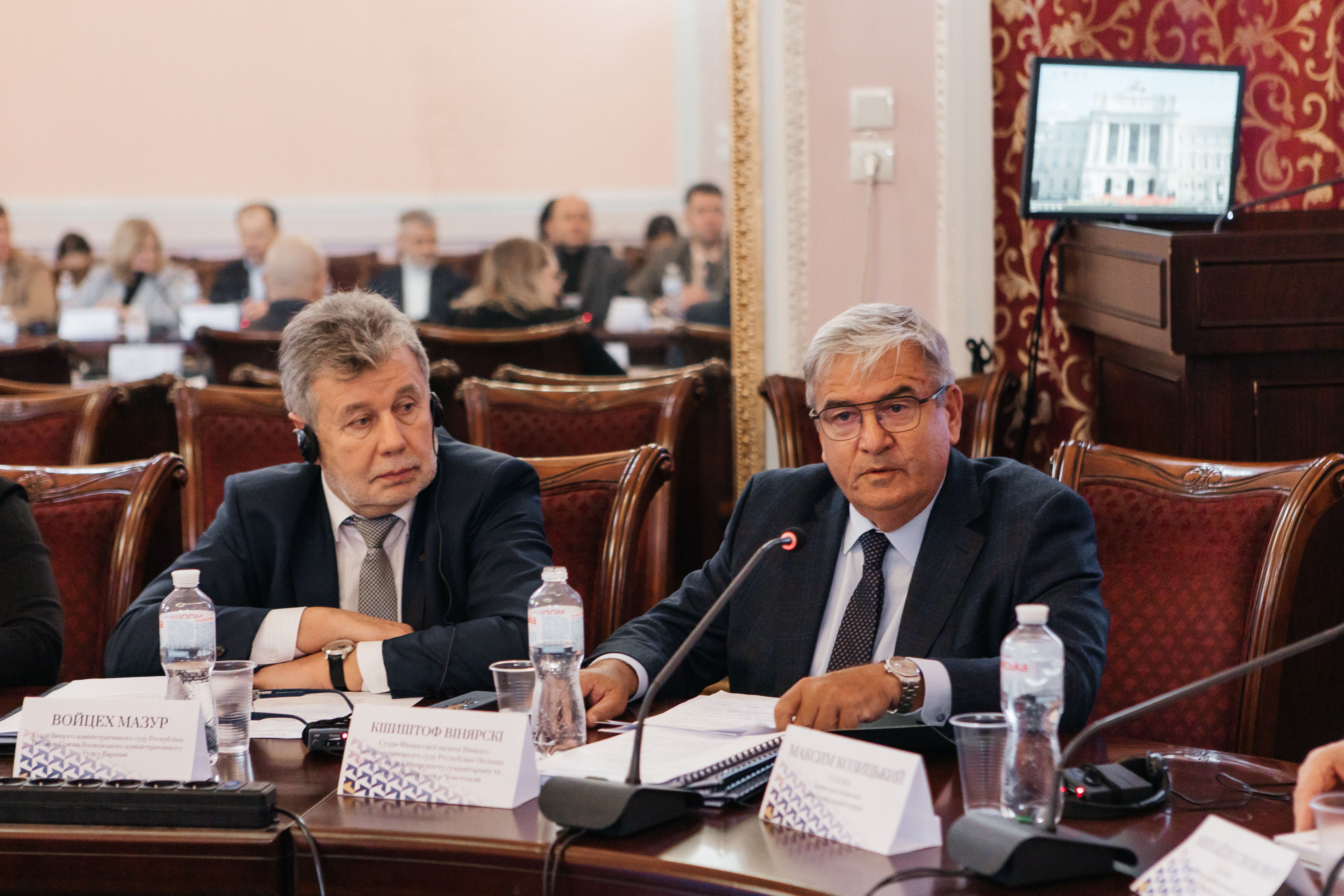 У своїй вітальній промові суддя Фінансової палати Вищого адміністративного суду Республіки Польща, голова Ради університету гуманітарних та природничих наук у Ченстохові Кшиштоф Вінярскі пригадав, що у 2019 році брав участь у Міжнародній конференції «Адміністративна юстиція в Польщі та Україні: порівняльні аспекти» і після її закінчення будував плани на участь в таких конференціях у наступні роки. «Згодом, як і сказали колеги, розпочалася пандемія, і ми щиро вірили, що більших викликів вже бути не може. Але 2022 рік сколихнув Україну та всю Європу через повномасштабне вторгнення росії. Я переконаний, що Ви – українці – переможете у цій війні, адже весь цивілізований світ разом із вами», – зазначив Кшиштоф Вінярскі.