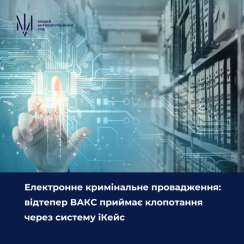 Сьогодні, 1 грудня 2023 року, Вищий антикорупційний суд розпочав експлуатацію інформаційно-телекомунікаційної системи досудового розслідування (іКейс). Відтепер ВАКС прийматиме клопотання про дозвіл на проведення обшуку житла чи іншого володіння особи від детективів НАБУ та прокурорів САП в електронному форматі.