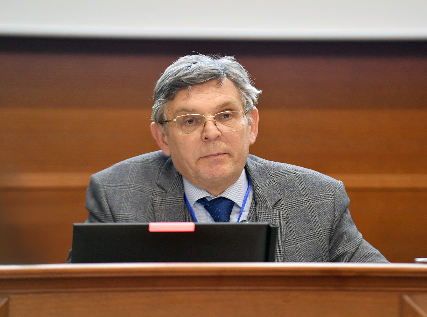 Тема виступу менеджера проєкту Програми підтримки ОБСЄ для України Олександра Водяннікова – «Злочини проти миру: проблематика притягнення до кримінальної відповідальності». Доповідач, зокрема, зазначив: КК України – це єдиний український кодекс, який має пряме посилання на те, що він базується на принципах та нормах загального міжнародного права. Тому для застосування та тлумачення ст. 437 «Планування, підготовка, розв’язування та ведення агресивної війни» КК України важливим є практика, яка склалася в загальному міжнародному праві. За його словами, ст. 437 КК України не подібна до тієї норми, що закладена в Римському статуті МКС, але вона відтворює стан загального, тобто звичаєвого міжнародного права, що склалося та діє, в тому числі й зараз.
