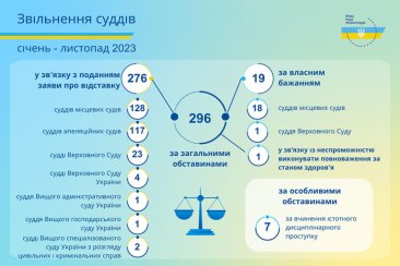 Протягом січня – листопада 2023 року Вища рада правосуддя ухвалила рішення щодо звільнення 303 суддів.