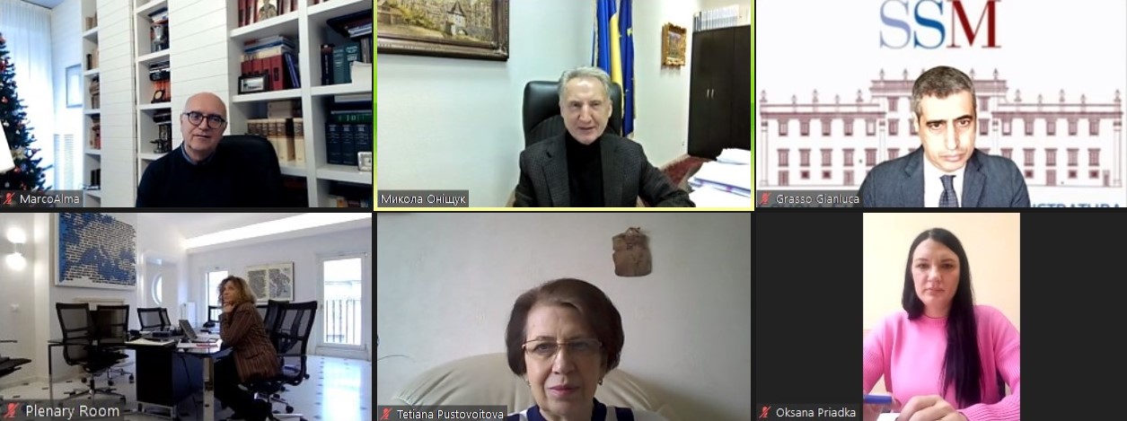 12 грудня 2023 року ректор Національної школи суддів України Микола Оніщук провів робочу онлайн-зустріч з членами Ради директорів Вищої школи юстиції Італії Марко Альмою та Джанлукою Грассо з метою визначення подальших шляхів спільної діяльності.