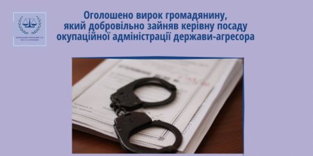 26 грудня 2023 року оголошено вирок у кримінальному провадженні по обвинуваченню громадянина України, який добровільно зайняв керівну посаду заступника голови окупаційної адміністрації держави-агресора – «Акимовская поселковая администрация Мелитопольского района», тобто вчинив кримінальне правопорушення, передбачене частиною 5 статті 111-1 Кримінального кодексу України (колабораційна діяльність, а саме: добровільне зайняття громадянином України посади, пов’язаної з виконанням організаційно-розпорядчих або адміністративно-господарських функцій, у незаконних органах влади, створених на тимчасово окупованій території, у тому числі в окупаційній адміністрації держави-агресора).