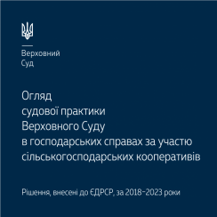 Верховний Суд опублікував огляд судової практики Верховного Суду в господарських справах за участю сільськогосподарських кооперативів (рішення, внесені до ЄДРСР, за 2018–2023 роки) – https://supreme.court.gov.ua/userfiles/media/new_folder_for_uploads/supreme/ogliady/Oglyad_KGS_kooperativi.pdf.