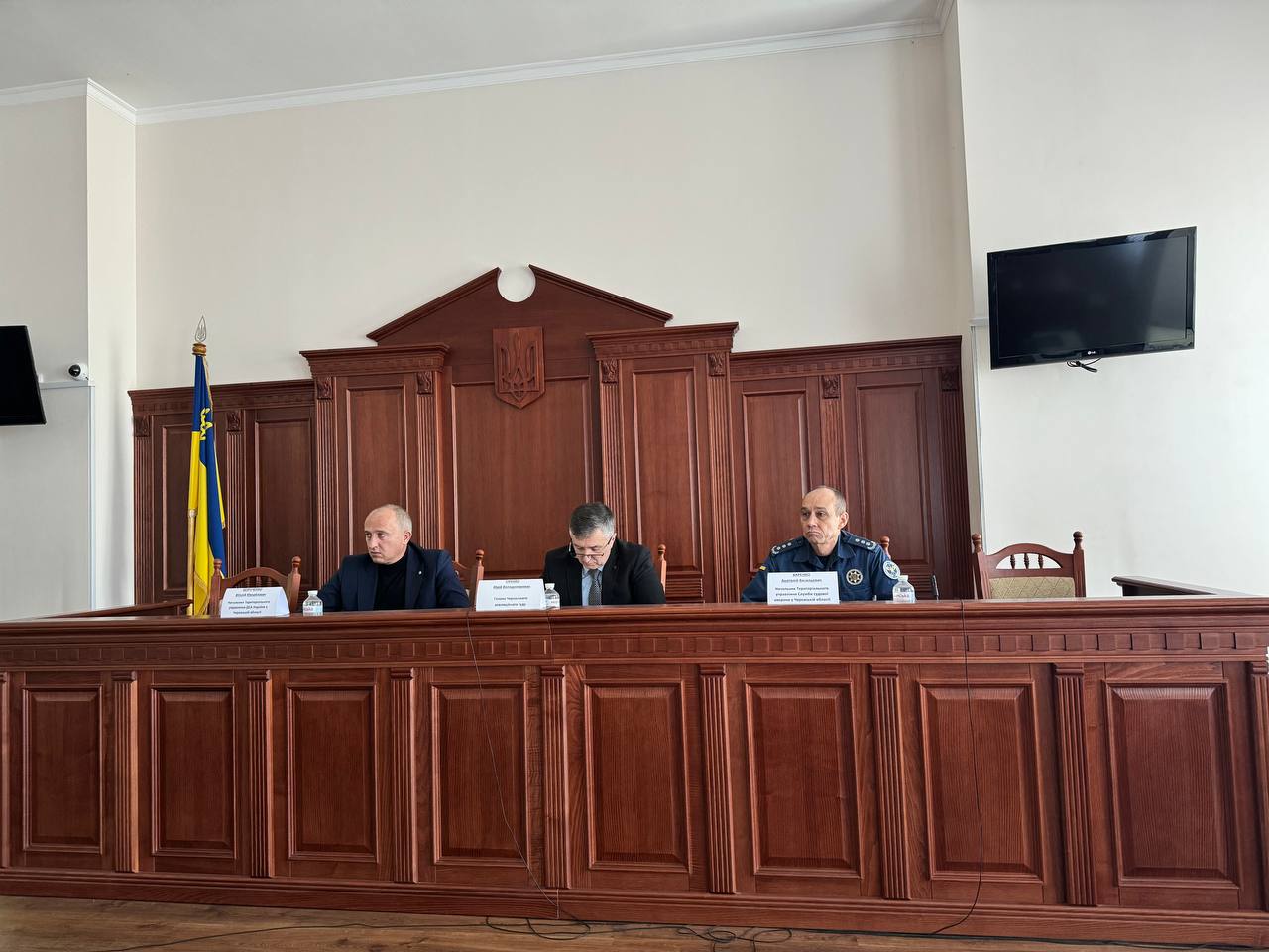 Начальник Територіального управління Державної судової адміністрації України у Черкаській області Віталій Безрученко та начальник Територіального управління Служби судової охорони у Черкаській області Анатолій Харенко висвітлили результати діяльності та ключові проблеми, з якими стикаються у своїй роботі.