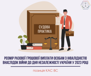 КАС ВС вказав, що ЗУ «Про внесення змін до деяких законів України щодо разової грошової виплати ветеранам війни та жертвам нацистських переслідувань» від 20.03.2023 №2983-IX, ч. 5 ст. 13 Закону №3551-XII викладено у новій редакції наступного змісту: «Щороку до Дня Незалежності України особам з інвалідністю внаслідок війни виплачується разова грошова виплата у порядку та розмірах, визначених КМУ в межах відповідних бюджетних призначень, встановлених законом про Державний бюджет України».