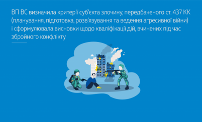 Такого висновку дійшла Велика Палата Верховного Суду, розглянувши кримінальне провадження за касаційними скаргами захисників двох осіб, засуджених за вчинення злочинів, передбачених ч. 2 ст. 437 КК України (планування, підготовка, розв’язування та ведення агресивної війни); ч. 1 ст. 438 КК України (порушення законів та звичаїв війни); ч. 3 ст. 146 КК України (незаконне позбавлення волі або викрадення людини); ч. 2 ст. 260 КК України (створення не передбачених законом воєнізованих або збройних формувань) і ч. 1 ст. 263 КК України (незаконне поводження зі зброєю, бойовими припасами або вибуховими речовинами).