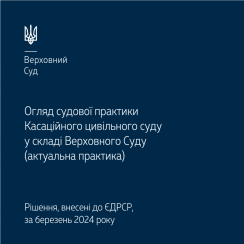 До уваги – черговий щомісячний огляд актуальної судової практики Касаційного цивільного суду у складі Верховного Суду за березень 2024 року – https://supreme.court.gov.ua/userfiles/media/new_folder_for_uploads/supreme/ogliady/Oglyad_KCS_03_2024.pdf
