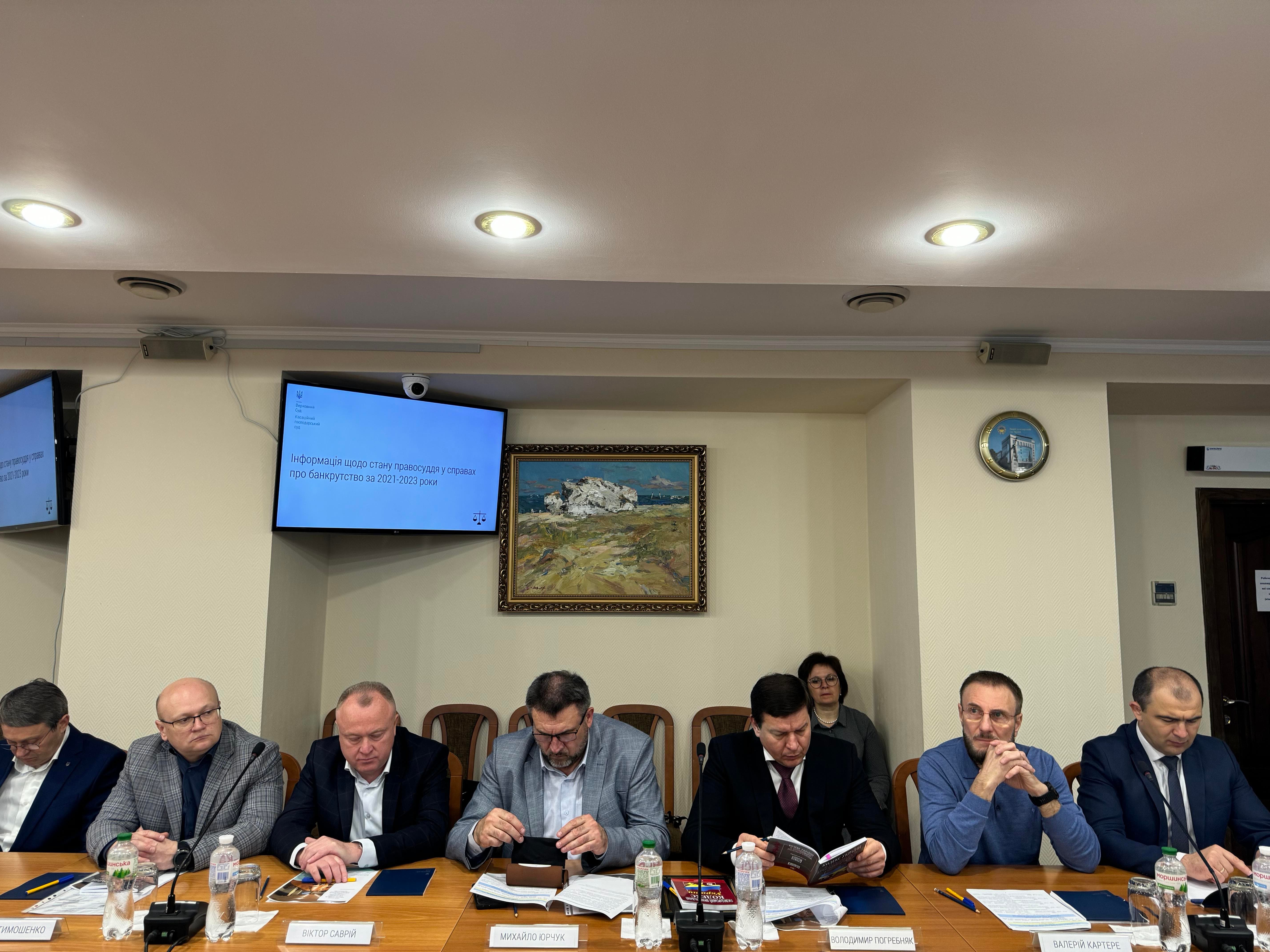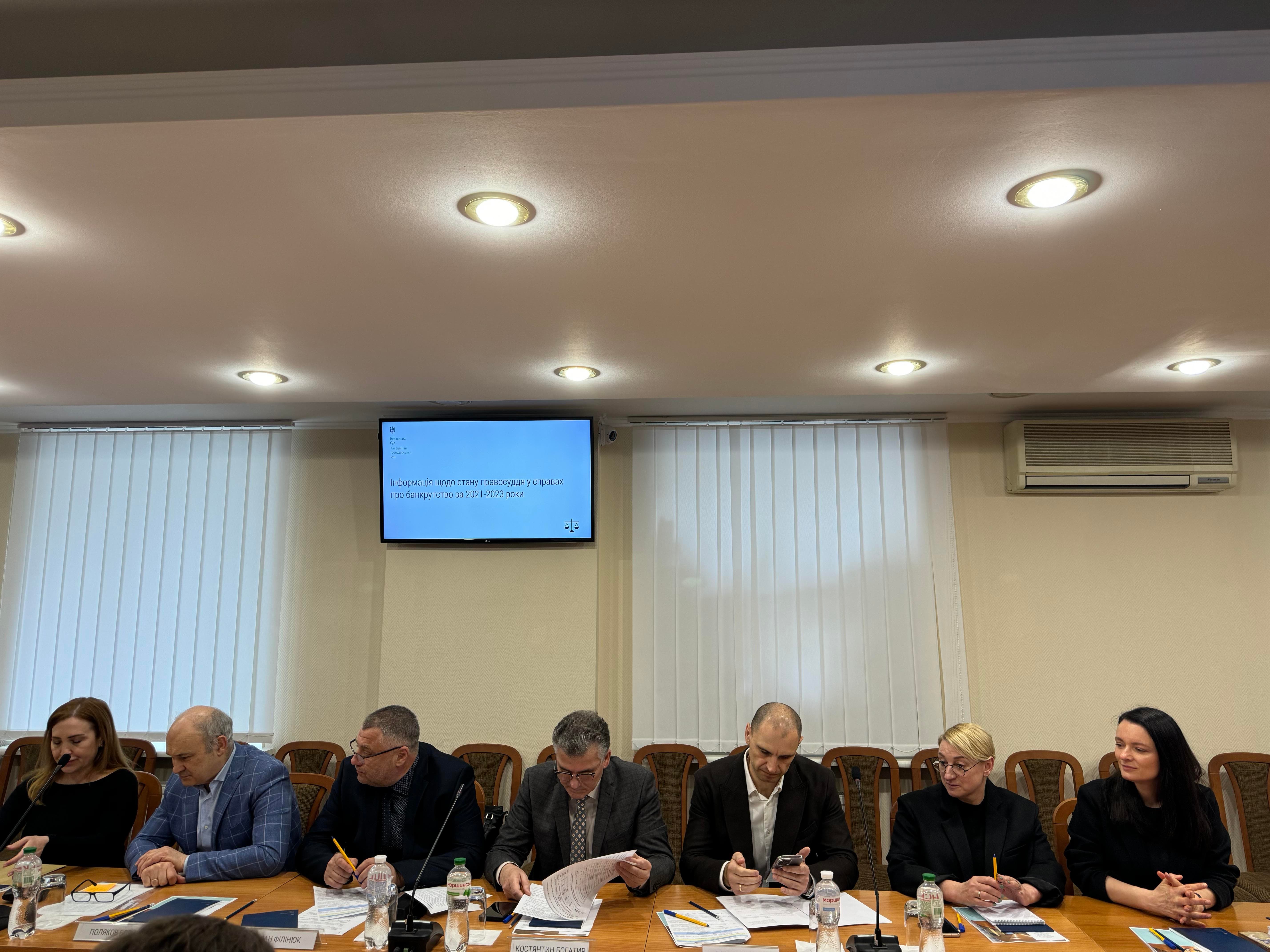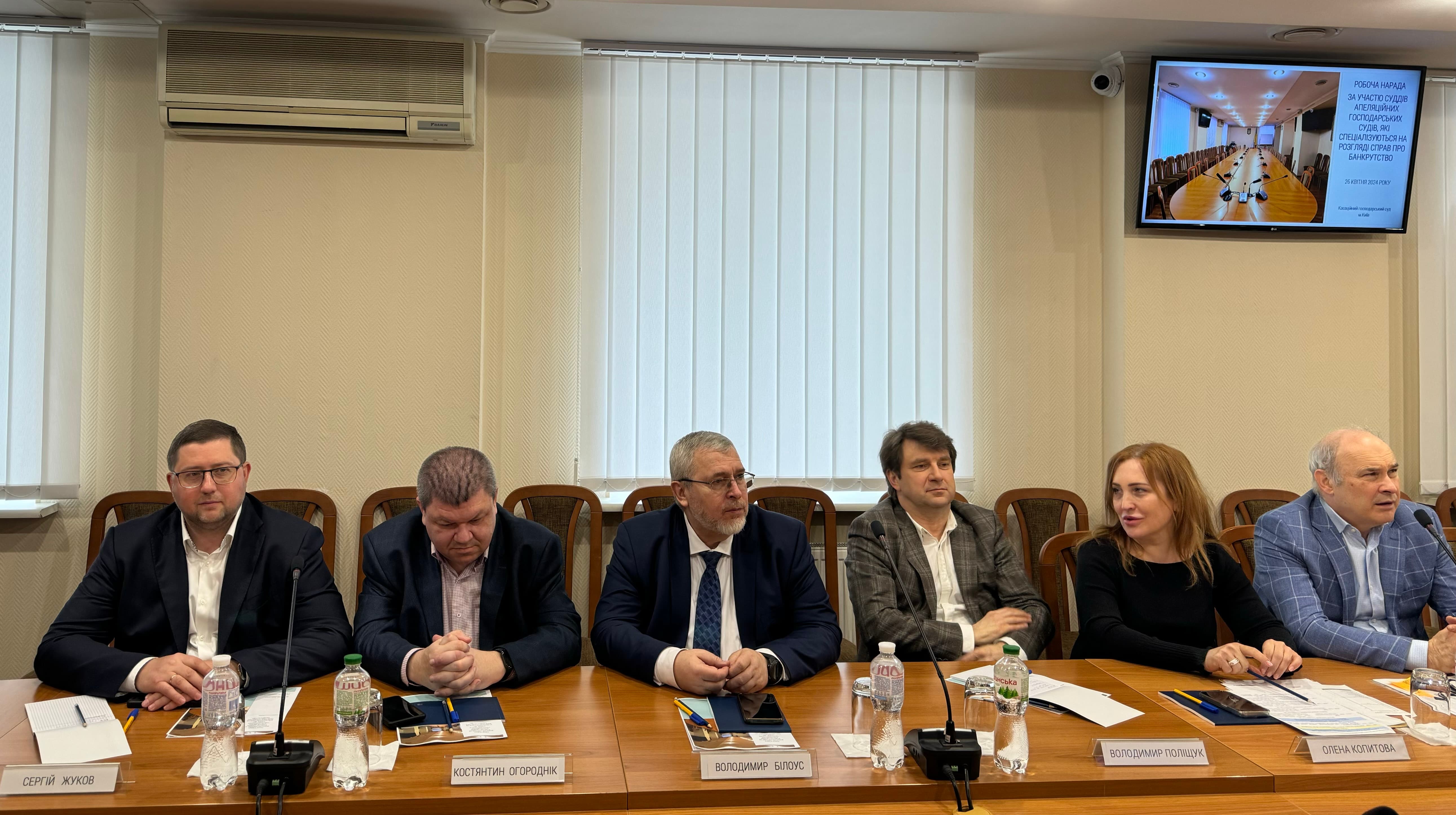 До дискусії долучилися судді судової палати для розгляду справ про банкрутство КГС ВС Володимир Погребняк, Сергій Жуков, Валерій Картере, Костянтин Огороднік, Володимир Білоус, суддя Великої Палати ВС Олександр Банасько, керівник секретаріату КГС ВС Наталія Пляс, представники управління аналітичної та правової роботи Олеся Лукомська, Оксана Загацька, Олена Кармазіна, начальник відділу забезпечення роботи палати для розгляду справ про банкрутство Людмила Кононець, а також керівництво та судді апеляційних господарських судів України.