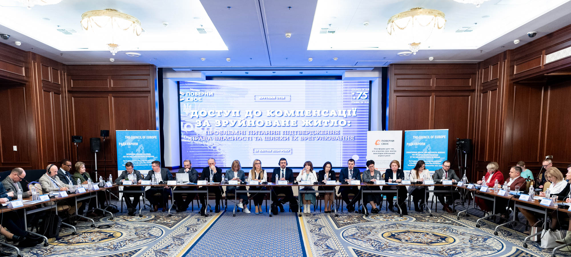 Захід, організований проєктами Ради Європи «Посилення судових та позасудових засобів захисту прав осіб, постраждалих від війни в Україні» та «Сприяння розробці житлових рішень для осіб, постраждалих від війни в Україні» спільно з ГО «Поверни своє», відбувся 25 квітня 2024 року.