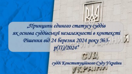 Національна школа суддів України 2 травня 2024 року запрошує на лекцію суддів Конституційного Суду України "Принципи єдиного статусу суддів як основа суддівської незалежності в контексті Рішення від 24 березня 2024 року № 3-р(ІІ)/2024".