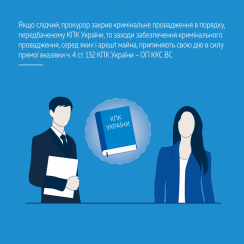 ОП ККС ВС зауважила, що імперативні приписи ч. 4 ст. 132 КПК України є нормами, за якими в КПК України встановлено порядок припинення арешту майна після закриття кримінального провадження і застосування яких у взаємозв’язку з положеннями ч. 1 ст. 170 цього Кодексу скасовує обмеження, застосовані під час досудового розслідування.