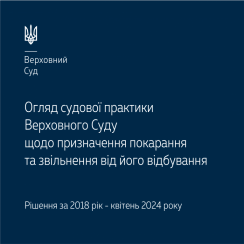 До вашої уваги пропонуємо новий тематичний огляд Верховного Суду щодо призначення покарання та звільнення від його відбування – https://supreme.court.gov.ua/userfiles/media/new_folder_for_uploads/supreme/ogliady/23_05_2024_tematychnyi_ohliad_VP.pdf.