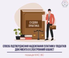 Так, КАС ВС вказав, що податковим законодавством передбачено можливість листування контролюючих органів з платниками податків в електронній формі шляхом надіслання документа в електронний кабінет з одночасним надісланням платнику податків на його електронну адресу (адреси) інформації про вид документа, дату та час його надіслання в електронний кабінет. Лише квитанція про доставку у текстовому форматі, що відправляється з електронного кабінету автоматично, в якій зазначено дату вручення та час доставки документа платнику податків, є належним доказом відправлення на електронний кабінет платника документів з електронного кабінету контролюючого органу.