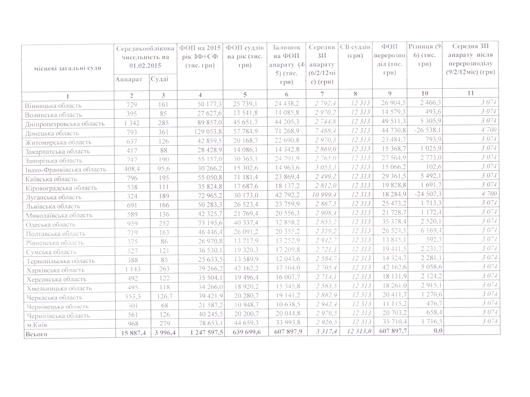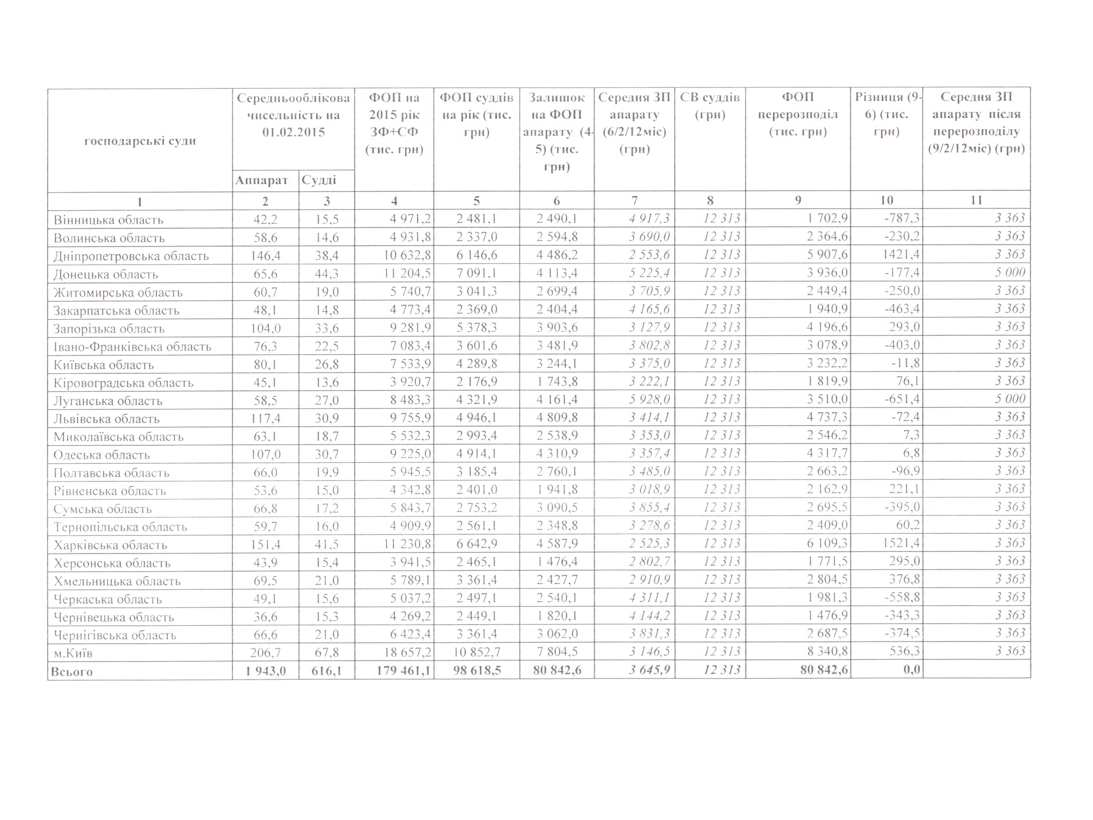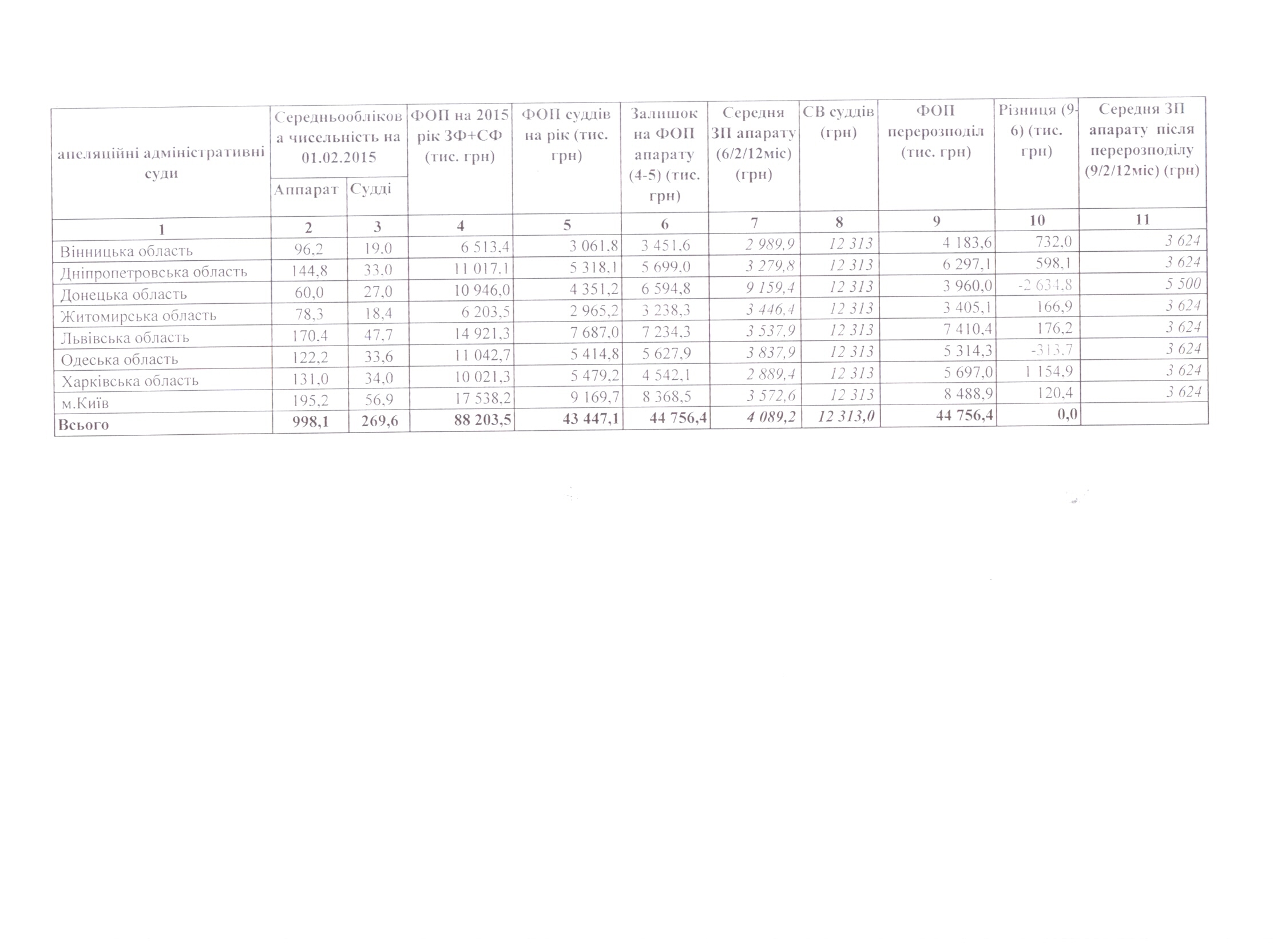 У березні 2015 року Держаною судовою адміністрацією України в межах бюджетної програми здійснено перерозподіл річного обсягу асигнувань на оплату праці між судами.