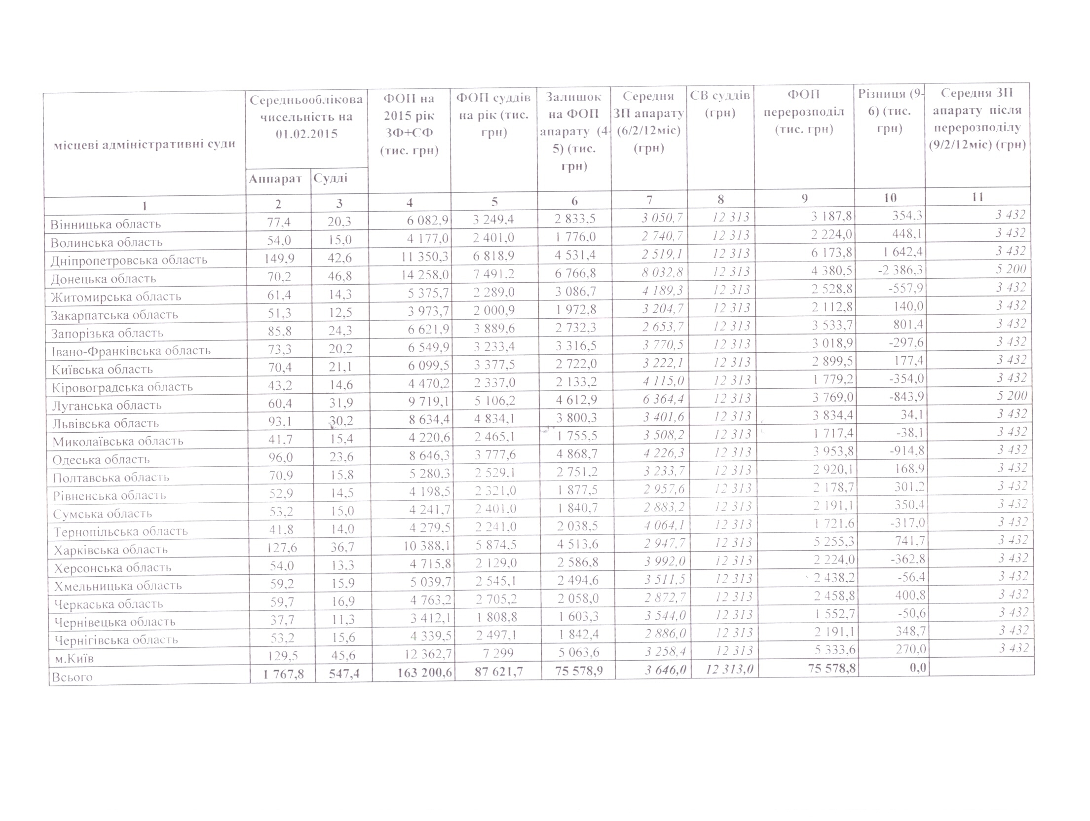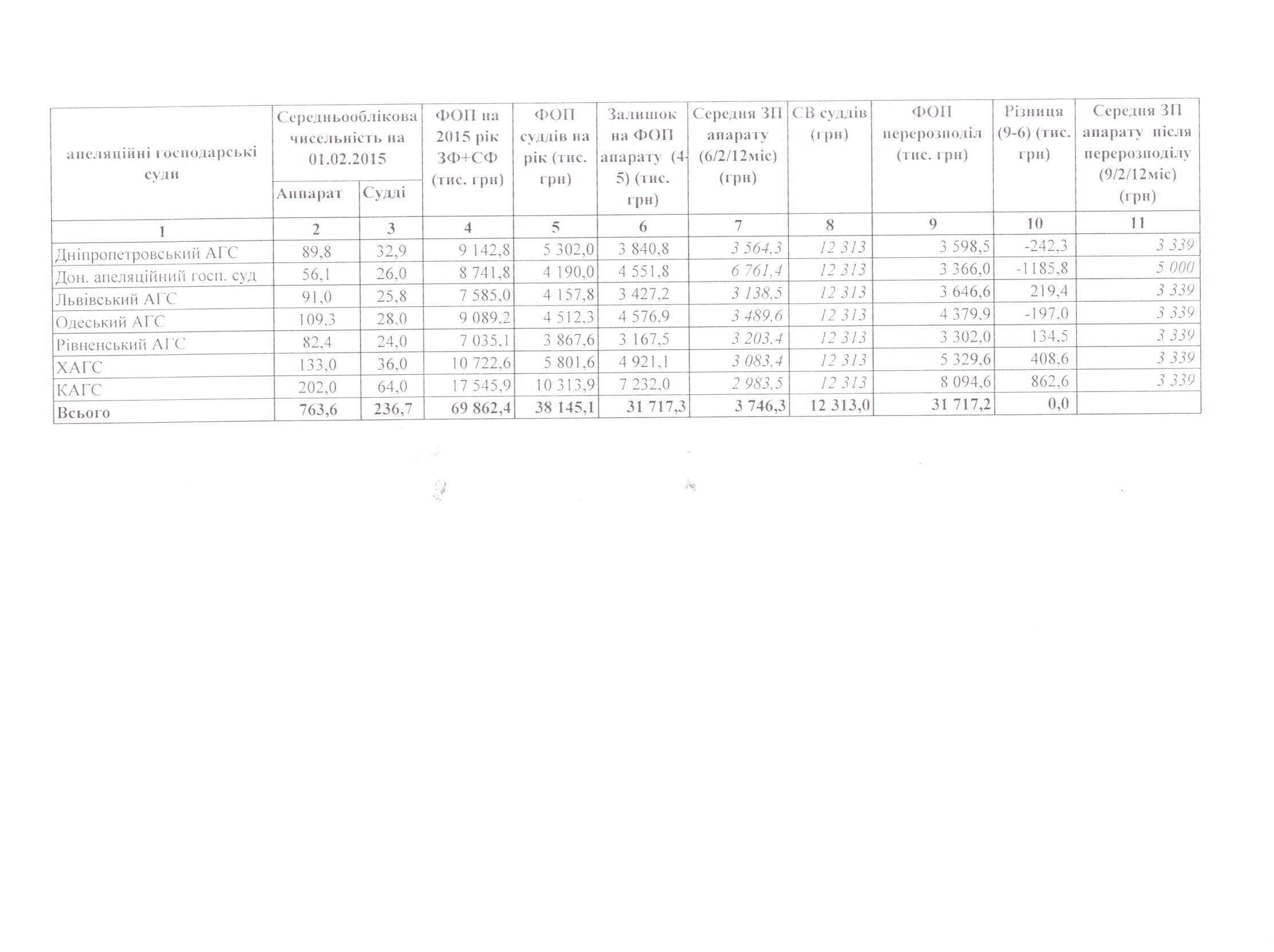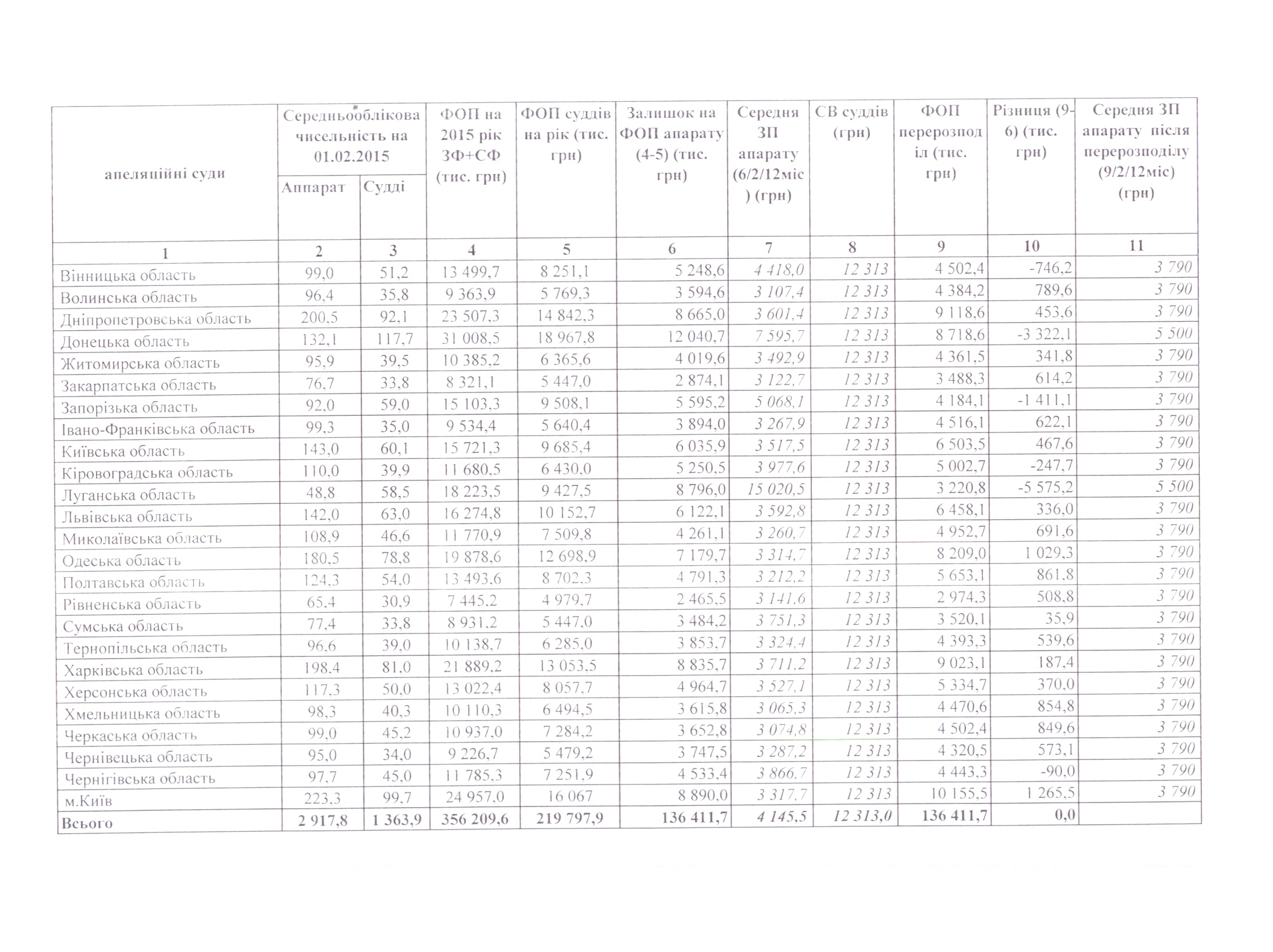 У березні 2015 року Держаною судовою адміністрацією України в межах бюджетної програми здійснено перерозподіл річного обсягу асигнувань на оплату праці між судами.