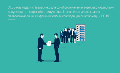 Водночас, як зазначила ВП ВС, право співвласника на одержання інформації не є необмеженим. Реалізуючи свої права, співвласник може звернутися до ОСББ за отриманням інформації про діяльність цього об’єднання, а останнє зобов’язане надати таку інформацію в обсязі, який є достатнім для реалізації прав співвласників на участь в управлінні ОСББ, відповідно до законів України «Про об’єднання співвласників багатоквартирного будинку» та «Про особливості здійснення права власності у багатоквартирному будинку», а також статуту об’єднання, крім конфіденційної інформації про фізичних осіб.