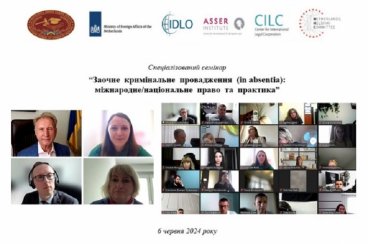 6 червня 2024 року Національна школа суддів України спільно з Інститутом Ассера (T.M.C. Аssеr Instituut), Центром міжнародно-правового співробітництва (CILC) та Нідерландським Гельсінським комітетом (NHC) провела перший із шести запланованих у червні-липні спеціалізованих семінарів для суддів, секретарів судових засідань та помічників суддів місцевих загальних та апеляційних судів "Заочне кримінальне провадження (in absentia): міжнародне/національне право та практика".