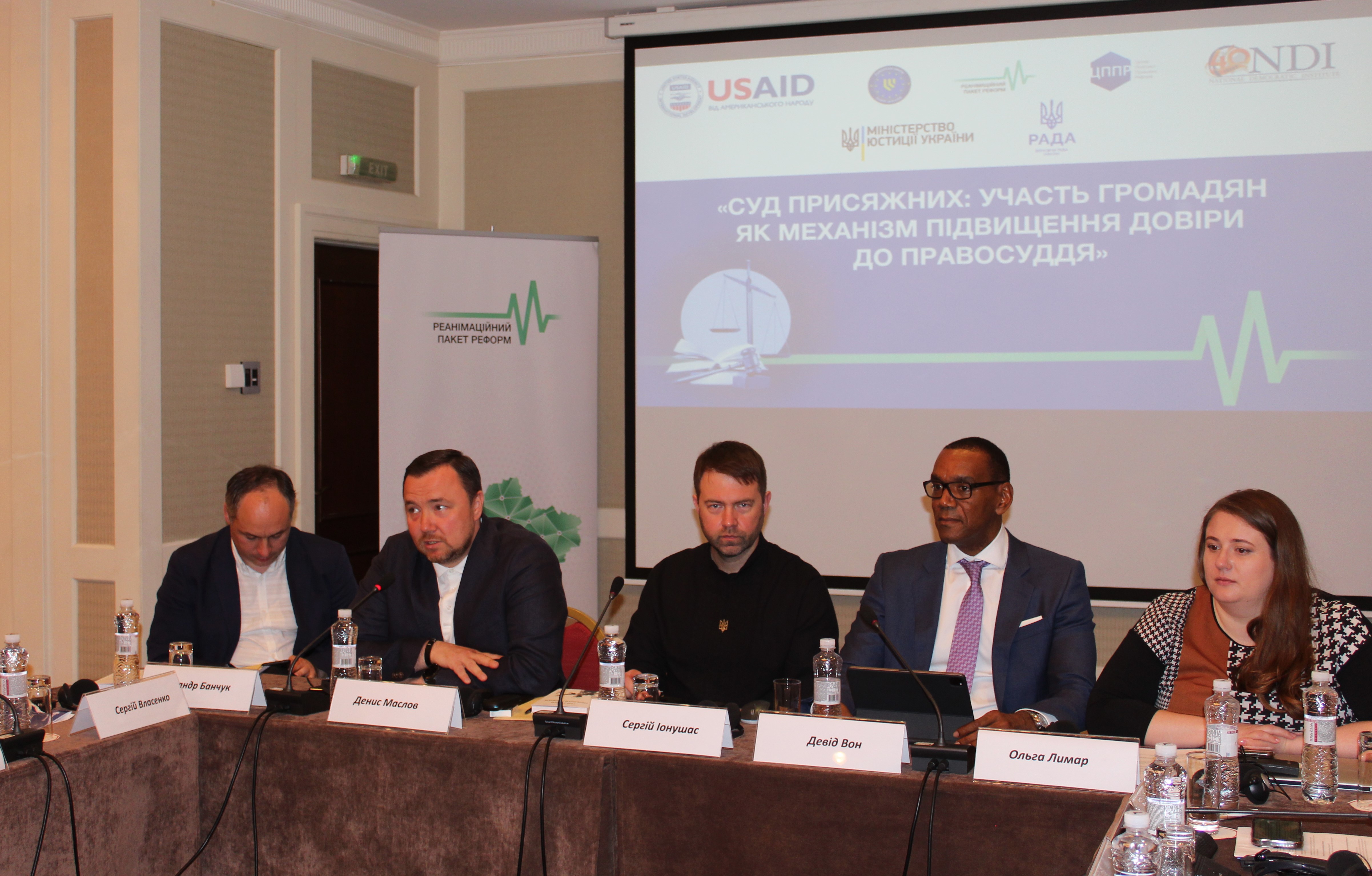 7 червня 2024 року відбулося засідання круглого столу «Обговорення законопроєктів на впровадження суду присяжних в Україні”. Захід організовано за ініціативою Комітетів Верховної Ради України з питань правової політики та з питань правоохоронної діяльності у партнерстві Програми USAID “Справедливість для всіх» спільно з Коаліцією Реанімаційний Пакет Реформ та Центром політико-правових реформ.