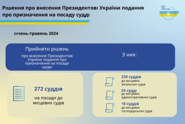 Упродовж січня - травня 2024 року Вища рада правосуддя ухвалила рішення про внесення Президентові України подання про призначення на посади 272 суддів до місцевих судів, з них: