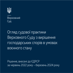До уваги огляд судової практики з вирішення господарських спорів в умовах воєнного стану (рішення, внесені до ЄДРСР, за червень 2022 року – березень 2024 року) – https://supreme.court.gov.ua/userfiles/media/new_folder_for_uploads/supreme/ogliady/Oglyad_KGS_gosp_spori_voen_stan.pdf