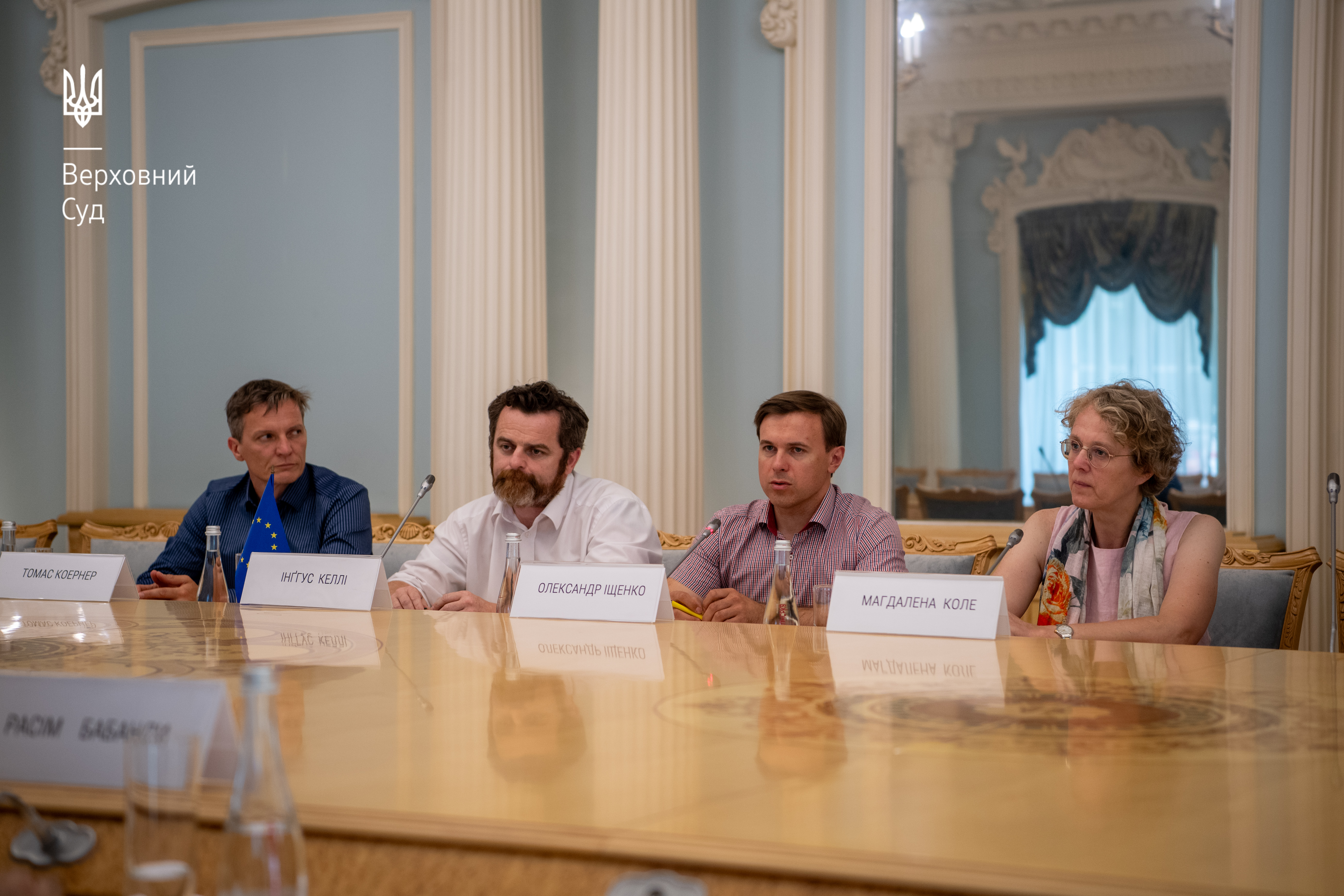 До зустрічі також долучилися радник з правових питань компоненту з питань міжнародних злочинів Олександр Іщенко, перший заступник керівника Апарату ВС Расім Бабанли та начальник відділу міжнародного співробітництва ВС Ліна Губар.