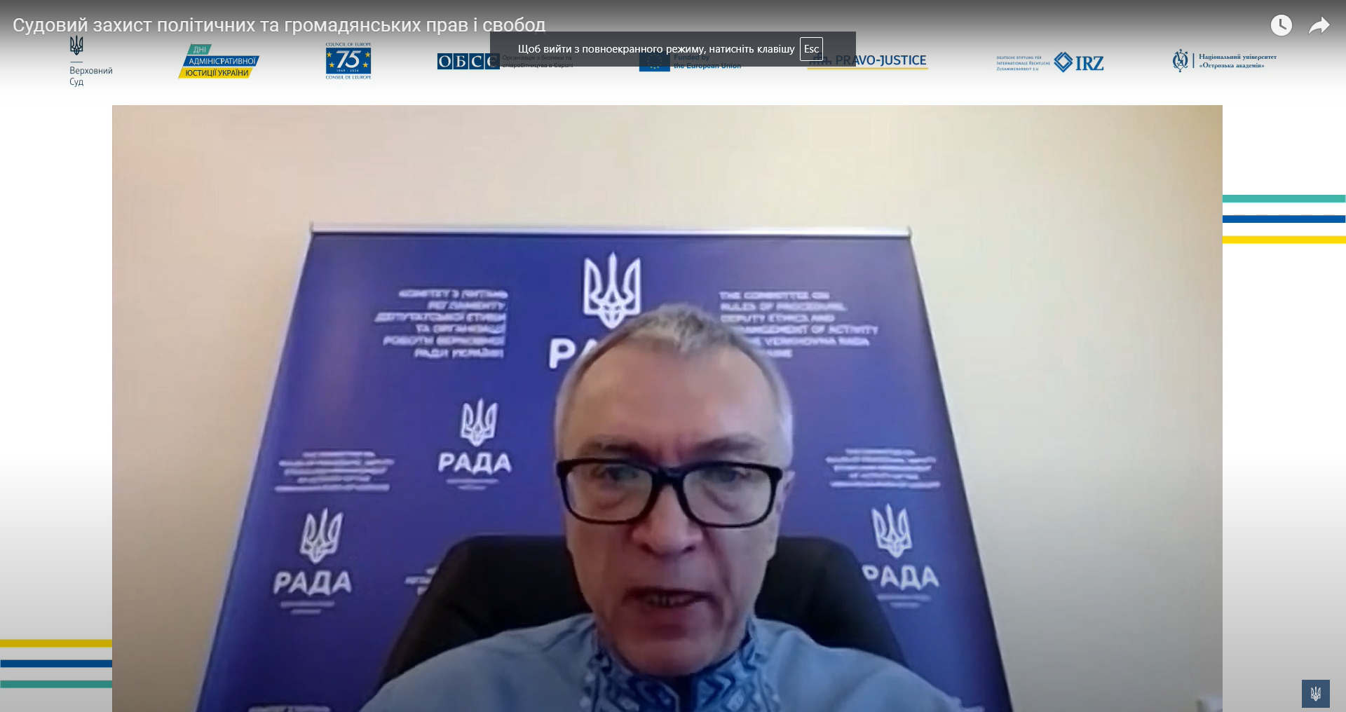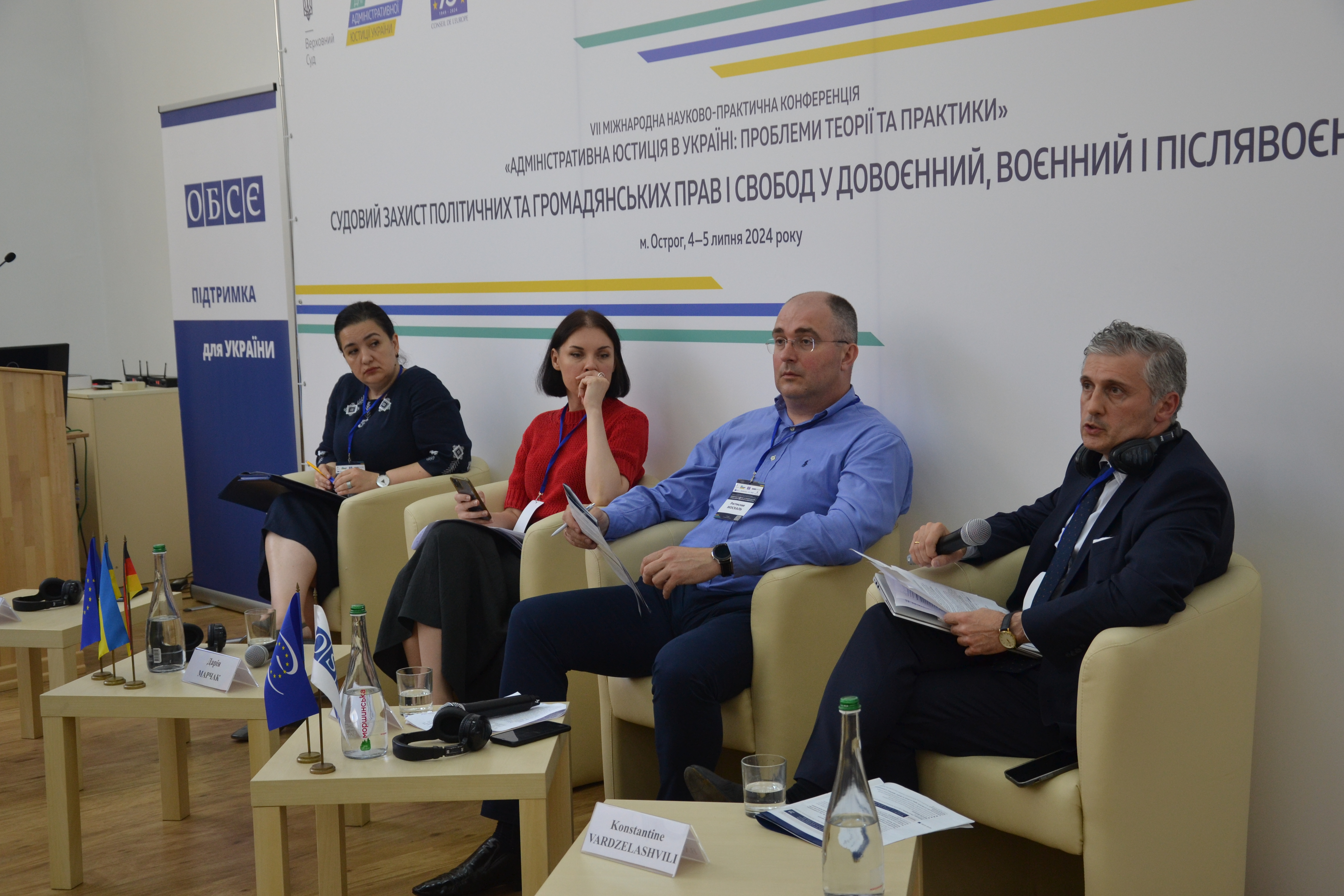 З темою «Роль судів у посиленні принципів верховенства права та судової незалежності: роздуми про досвід БДІПЛ в просуванні права на справедливий суд в адміністративному судочинстві» до дискусії долучився керівник відділу демократизації Бюро демократичних інститутів і прав людини ОБСЄ Константін Вардзелашвілі. Він поінформував учасників науково-практичної конференції про практику Суду ЄС у справах, які стосуються невиконання рішень національних судів, та пояснив, що хоча можуть бути різні причини затримки виконання рішень, але така тенденція в будь-якому випадку впливає на незалежність судової системи й дотримання принципу верховенства права. Якщо такі ситуації непоодинокі в якійсь із країн, то держава має переглянути законодавчі засоби, які є основою процедури виконання рішень, і деталізувати цей процес, передбачивши можливі труднощі, які можуть виникнути. Тільки таким чином може бути збережено авторитет судів та судової влади в цілому, адже без фактичного виконання рішень дотримання прав осіб є ілюзорним.