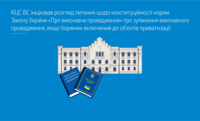 Верховний Суд у складі колегії суддів Першої судової палати Касаційного цивільного суду звернувся до Пленуму ВС для вирішення питання про внесення до Конституційного Суду України подання щодо конституційності (відповідності Конституції України) п. 12 ч. 1 ст. 34 Закону України «Про виконавче провадження», згідно з якою виконавець зупиняє вчинення виконавчих дій у разі включення єдиного майнового комплексу боржника – державного або комунального підприємства, пакета акцій (часток) у розмірі більше 50 відсотків статутного капіталу боржника – господарського товариства до переліку об’єктів малої або великої приватизації, що підлягають приватизації.