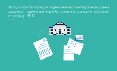 Як пояснила ВП ВС, якщо відповідач подає клопотання про поновлення пропущеного строку на подання заяви про перегляд заочного рішення, суд повинен застосувати ст. 127 ЦПК України, у якій вказано, що суд за заявою учасника справи поновлює пропущений процесуальний строк, установлений законом, якщо визнає причини його пропуску поважними.