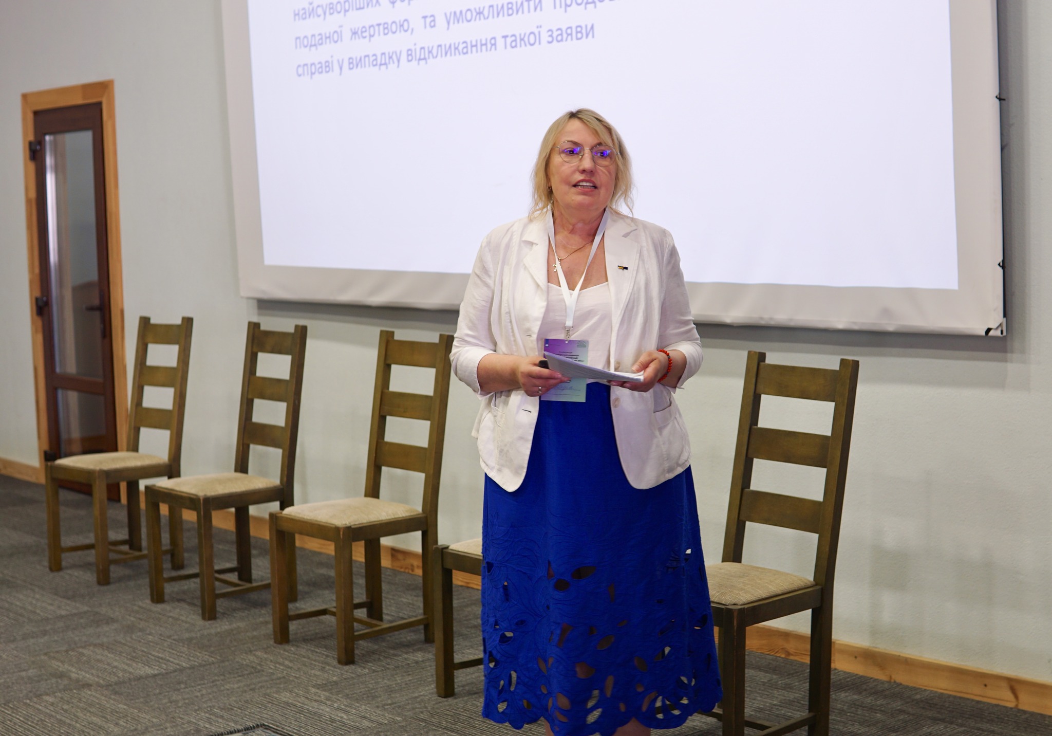 «У нашому законодавстві з’явився ще один термін – “злочин, пов’язаний із домашнім насильством”. На жаль, іноді правники розуміють цей термін звужено. Таке звужене тлумачення злочину, пов’язаного з домашнім насильством, як виключно складу злочину, передбаченого ст. 126-1 КК України, не дає можливості використовувати комплекс механізмів для захисту жертв домашнього насильства, зокрема застосовувати термінові заборонні приписи, обмежувальні приписи, обмежувальні заходи тощо. Тому в обвинувальних актах і слідчі, і прокурори мають обов’язково зазначати про те, що злочин був пов’язаний з домашнім насильством», – пояснила Надія Стефанів.
