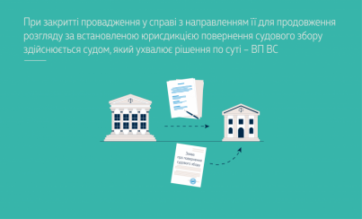 За висновком ВП ВС, закриття провадження у справі з направленням її для продовження розгляду судом належної юрисдикції не припиняє розгляду цієї справи. Судовий розгляд справи продовжується судом, до юрисдикції розгляду якого вона віднесена законом.