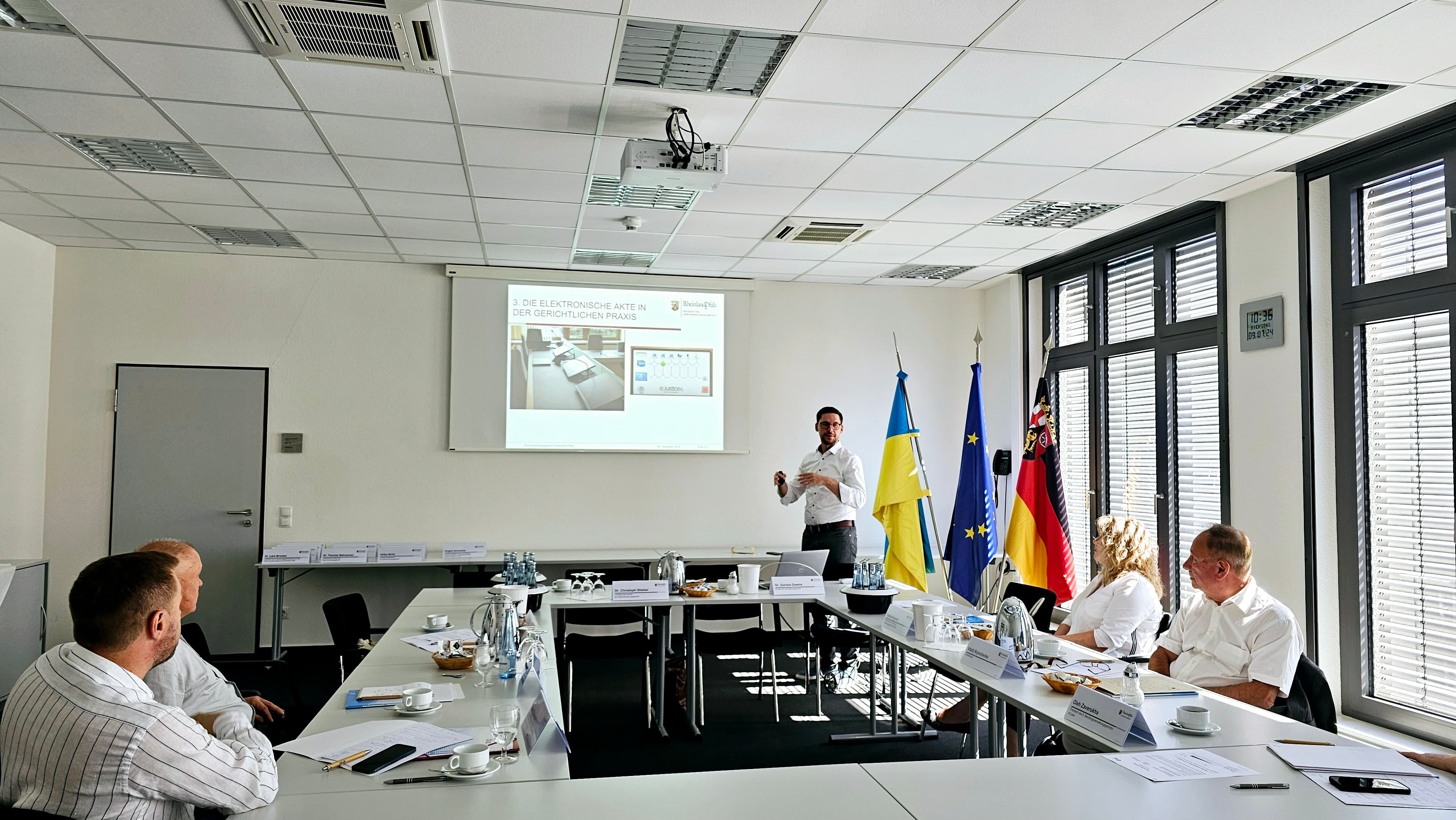 Під час роботи колоквіуму у Вищому адміністративному суді землі Рейнланд-Пфальц відбулася вітальна зустріч із президентом Конституційного суду та Вищого адміністративного суду федеральної землі Рейнланд-Пфальц д-ром Ларсом Брокером, суддею Вищого адміністративного суду федеральної землі Рейнланд-Пфальц Йоганнесом Ґьобелем, старшим менеджером проєктів Німецького фонду міжнародного правового співробітництва (IRZ) Вольфрамом Гертіґом та пізніше з керівником проєктів в Україні і Вʼєтнамі Німецького фонду міжнародного правового співробітництва (IRZ) Ангелою Шмайнк.