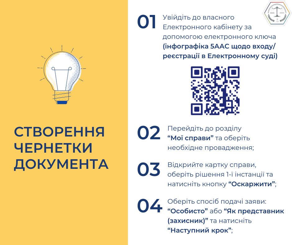 5ААС підготував невеличкий гайд щодо відправки апеляційної скарги за допомогою даного сервісу.