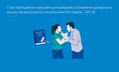 Вироком місцевого суду особу засуджено за домашнє насильство та на підставі п. 5 ч. 1 ст. 91-1 КК України покладено на неї обов’язок пройти програму для кривдників строком 2 місяці.